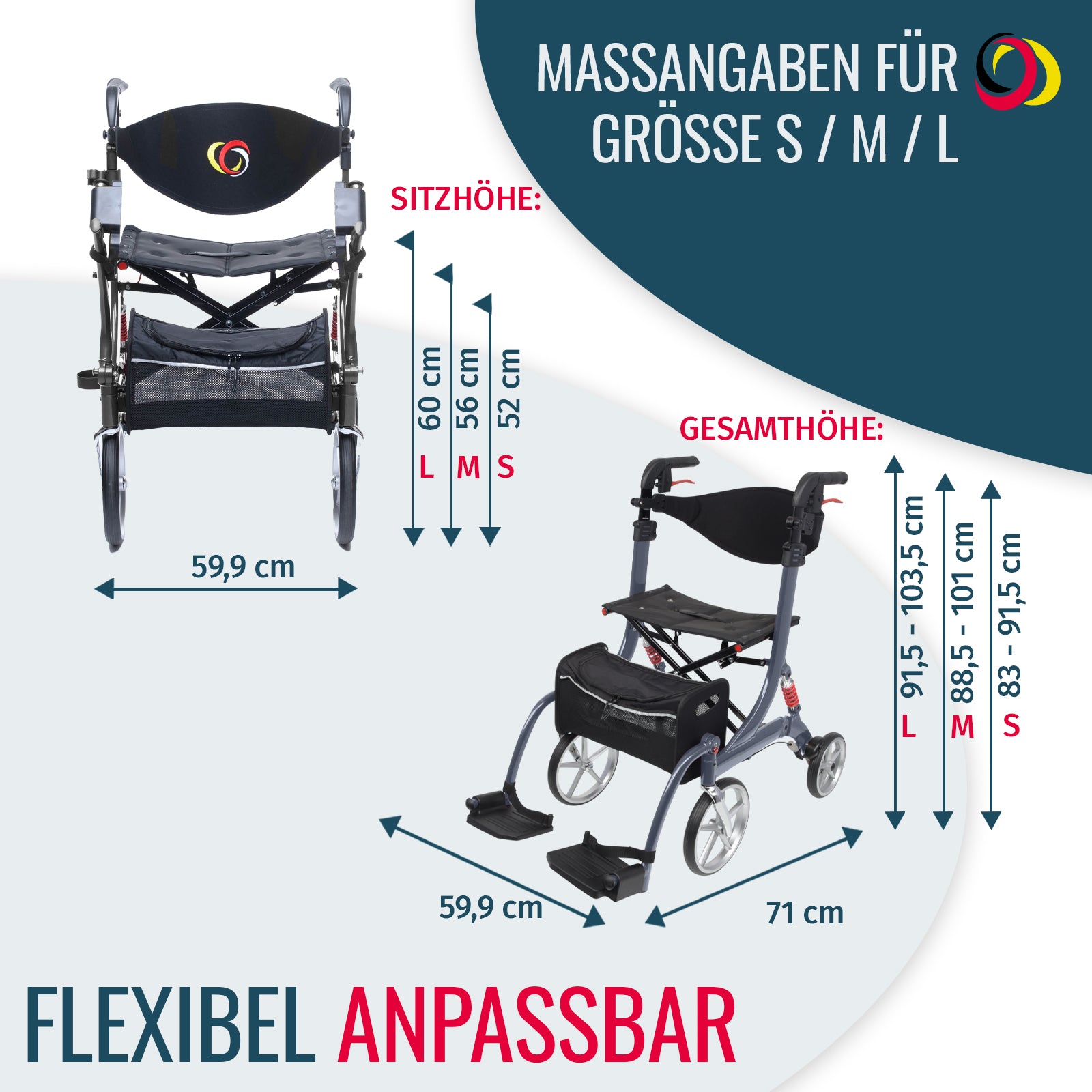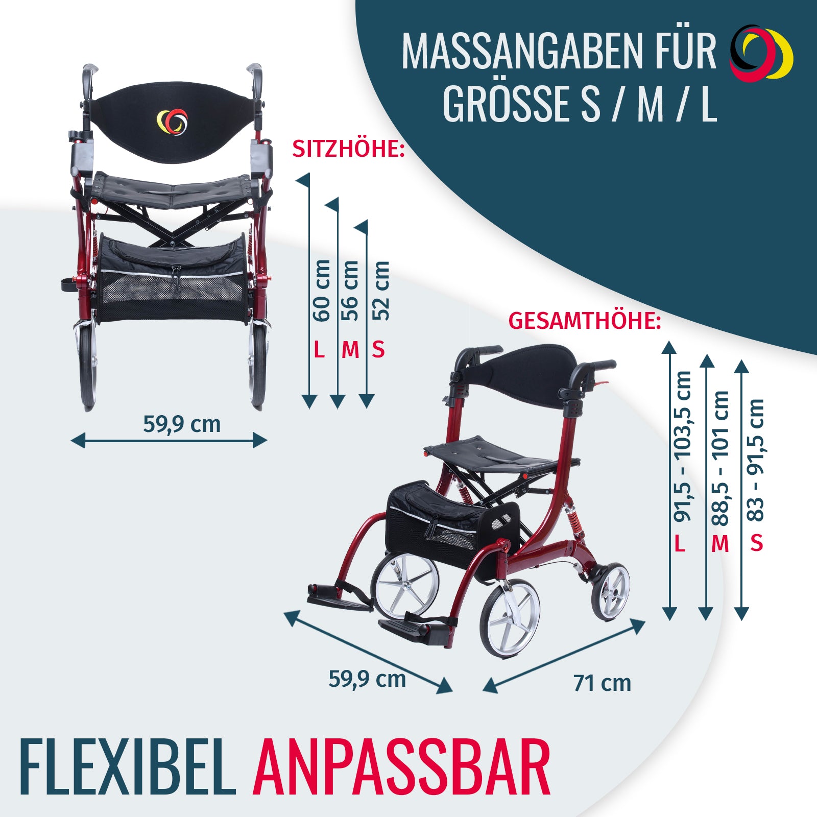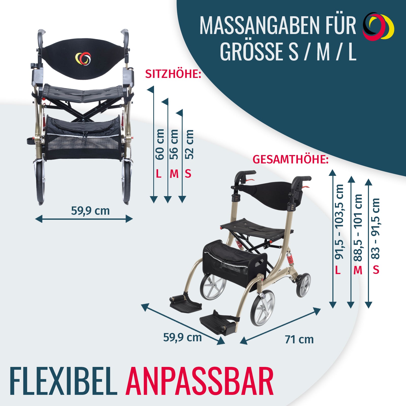 Rollator SPRING VARIO - Der Vielseitige mit Rollstuhl-Funktion